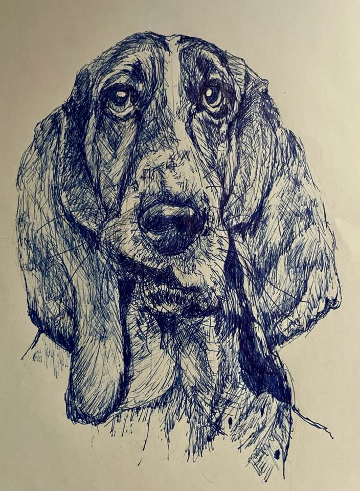 Just finished this portrait of “Pedro” blue ball point pen. Saturday’s class on cross hatching #sketchwithFrance