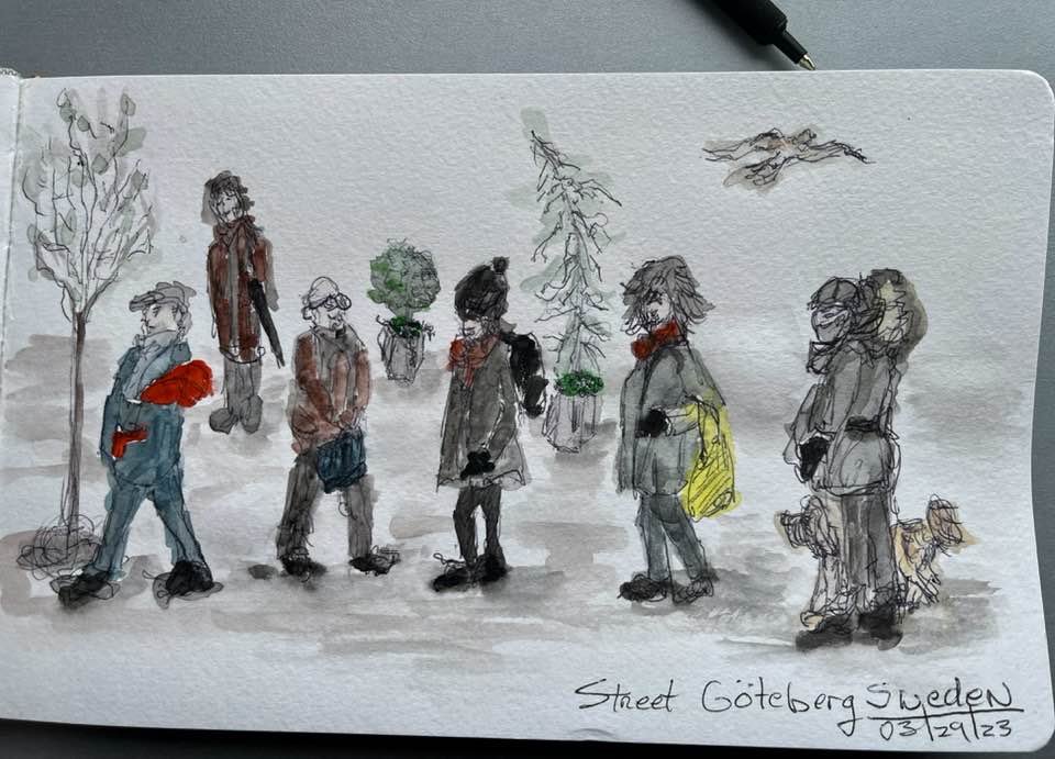 Now in Gothenburg, Sweden, enjoying the street view from our hotel. Yes we have to dress warm!!!!