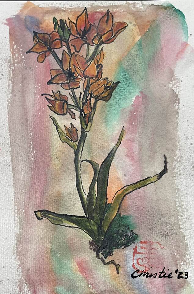 Happy May Day! Portrait of my Orange Star plant from Trader Joe’s. Dip pen ink, felt tip colors on one of my Geli prints.