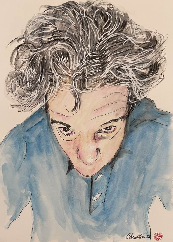Who dat? My latest masterpiece. Hint: He’s a mad scientist. Fine liner, watercolor pencils, white Posca Pen.