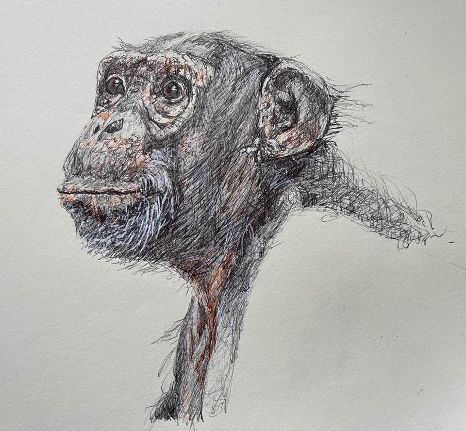Just finished my class drawing of À chimpanzee Bic Pens and Posca white. I just want to give him a big kiss!!!