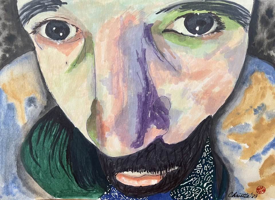 Nandor (the vampire) in outer space. Drawn from a Screenshot from the TV show #WhatWeDo In The Shadows. One of my favorite shows and character. Copic markers and watercolor background.