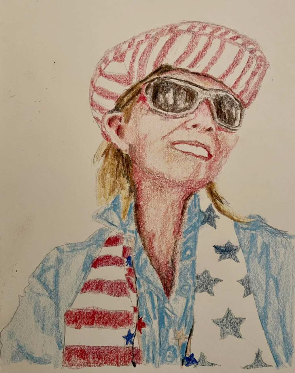 That’s right! Day 22 of Selfietember 2023. Using edge only of your colored pencils. Using Posca colored pencils…,,4th of July.
