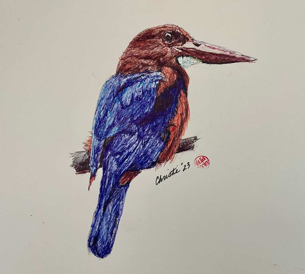 Today in #sketchbookskool we did a bird, crosshatching with Bic pens. Ain’t he cute?