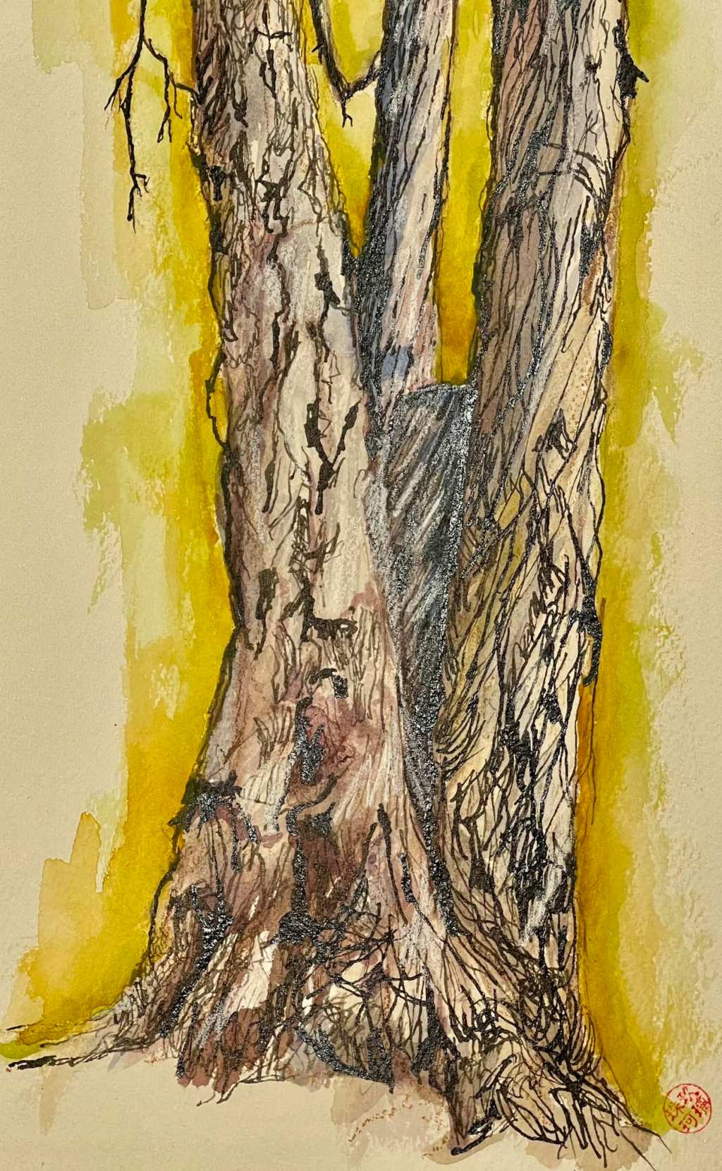 Yesterday, Beautiful Botanicals class. Trees, watercolor wash and ink for lines.