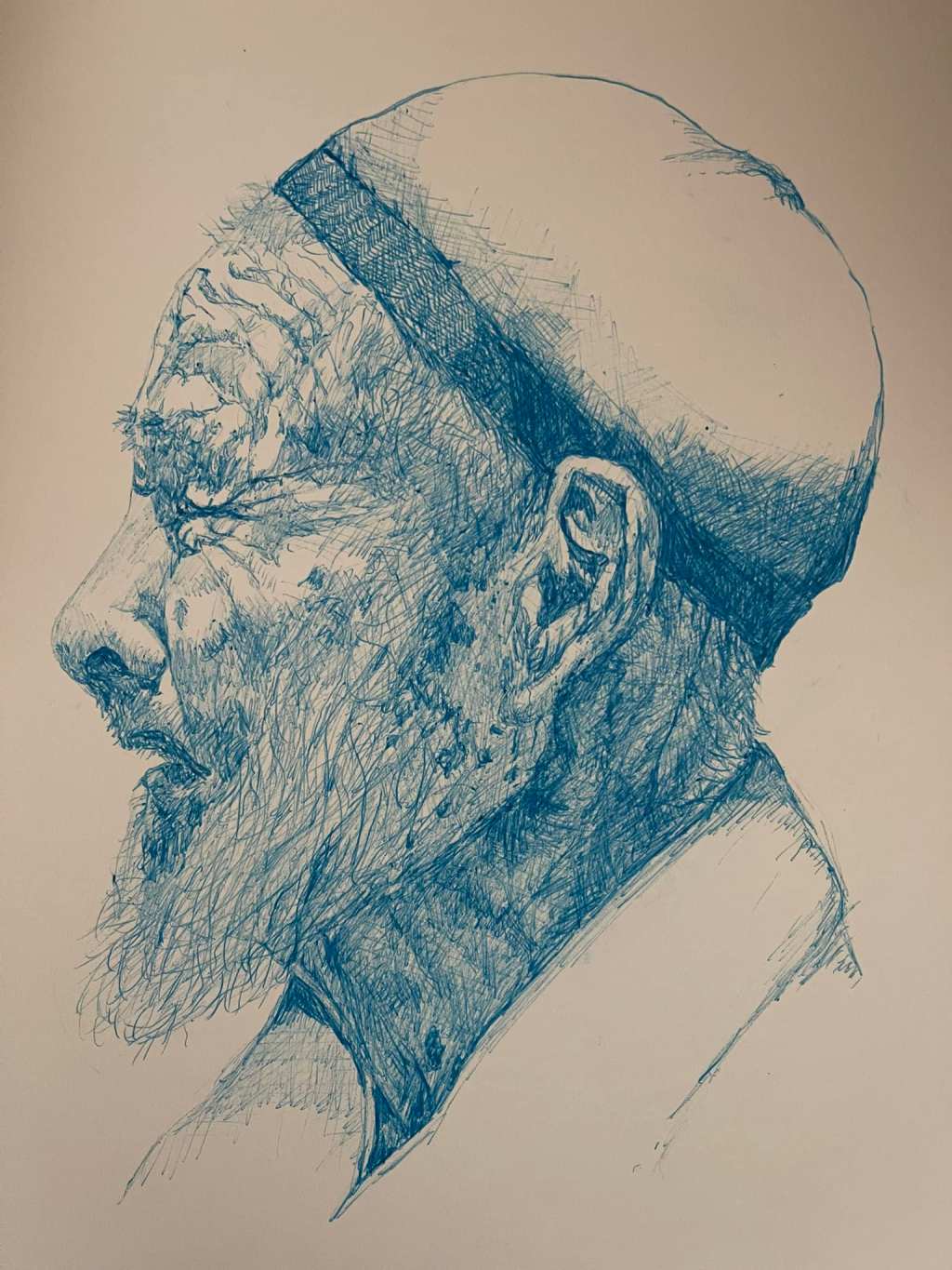 Today’s Sketch with blue Bic pen. Wrinkle study.