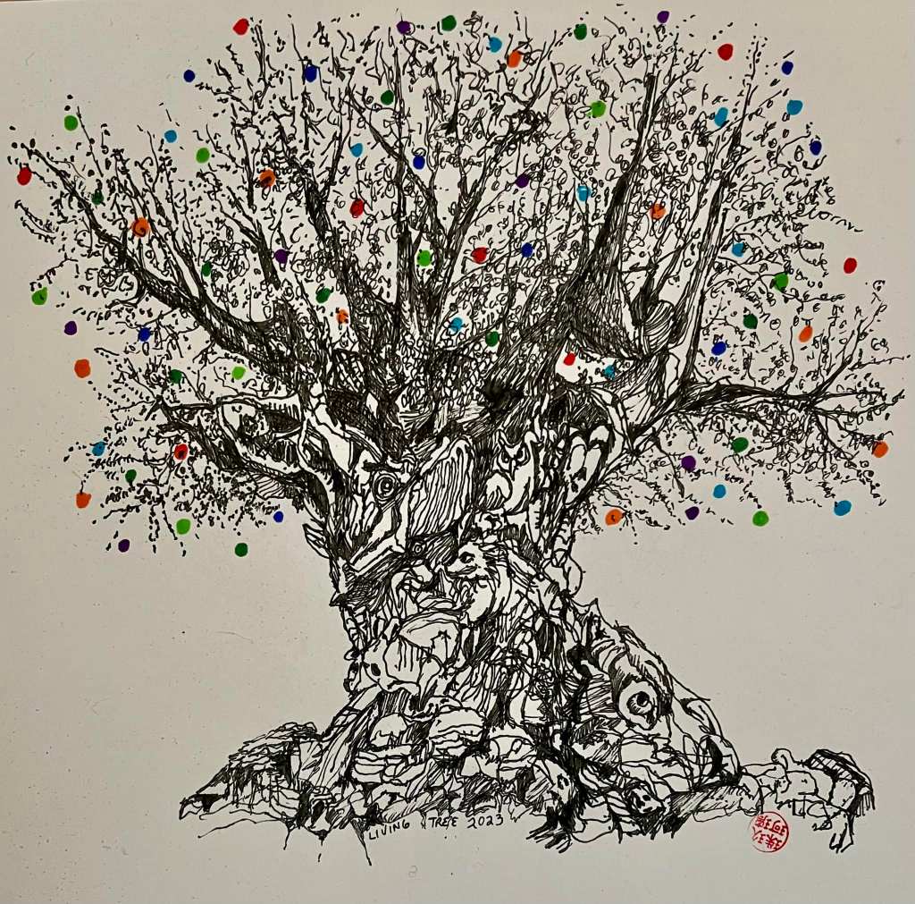 Merry Christmas everyone! Peace on earth! The Living Tree, pen, continuous line.