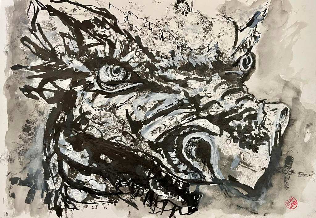 Date stamp dragon, stamps with additional white and black ink… year of the dragon…