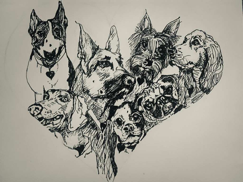Happy Valentine’s Day! Doggie drawings #drawwithme . Pen and ink .