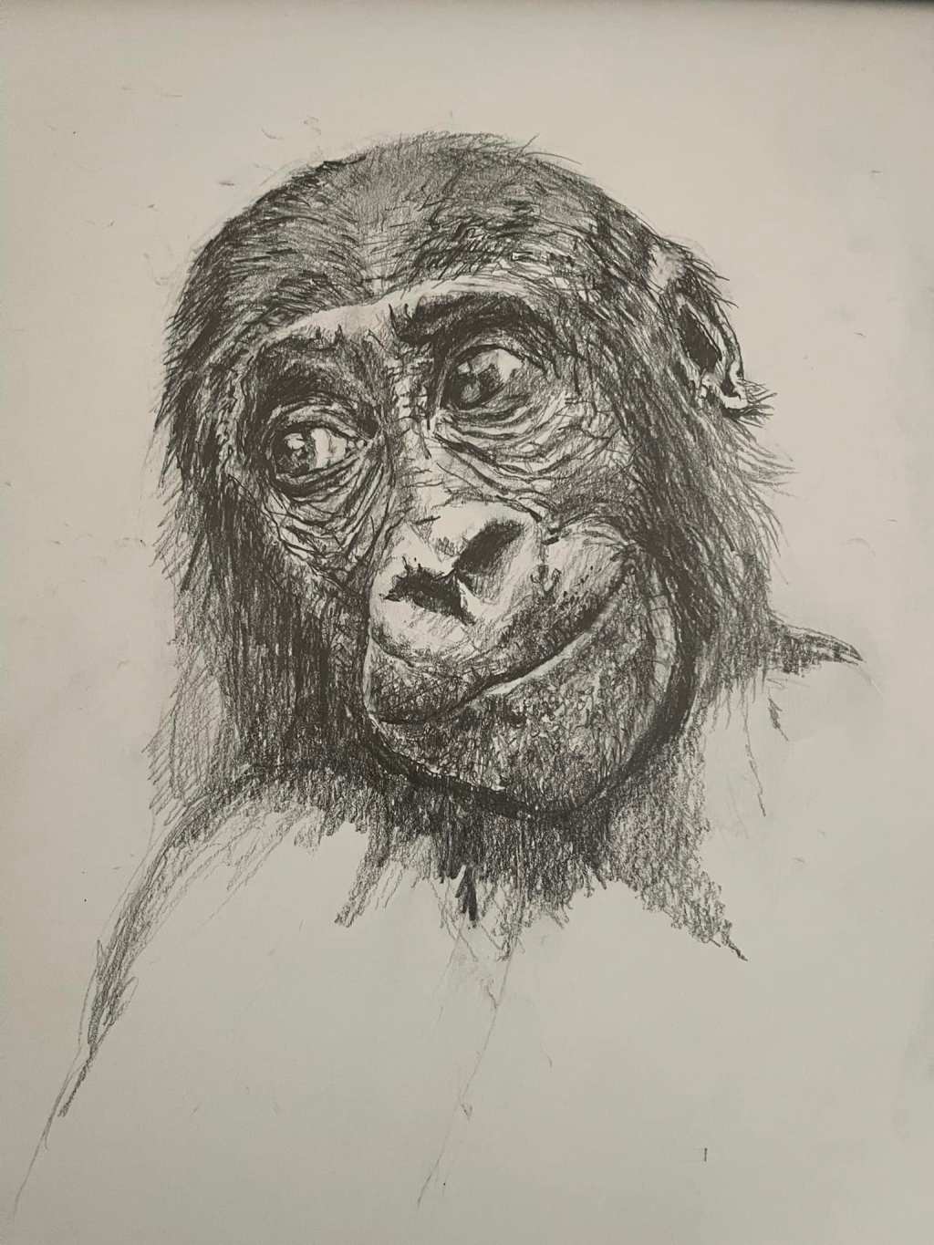 Finished today. Baby gorilla. Pencil. Last class with France Belleville at Sketchbook Skool.